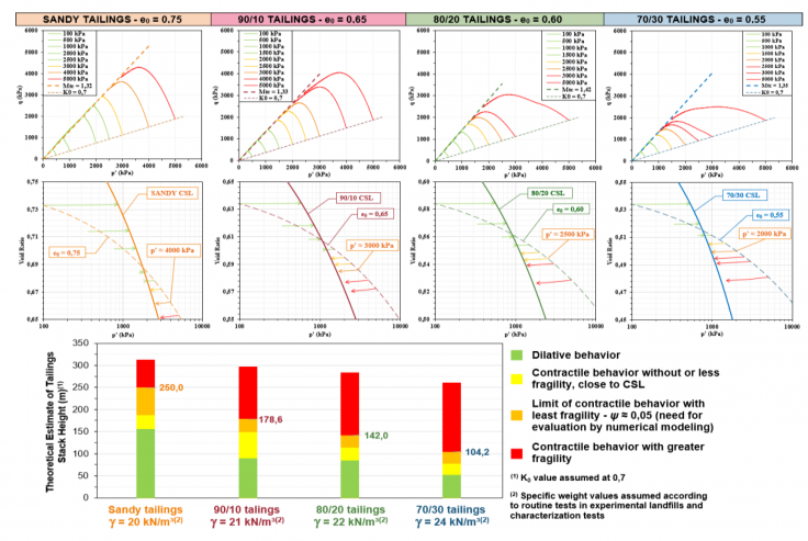 The analysis of the four tailings categories allowed not only the theoretical estimate of tailings stacks maximum height, but also the identification of the geotechnical behavior pattern. Tailings with sandy