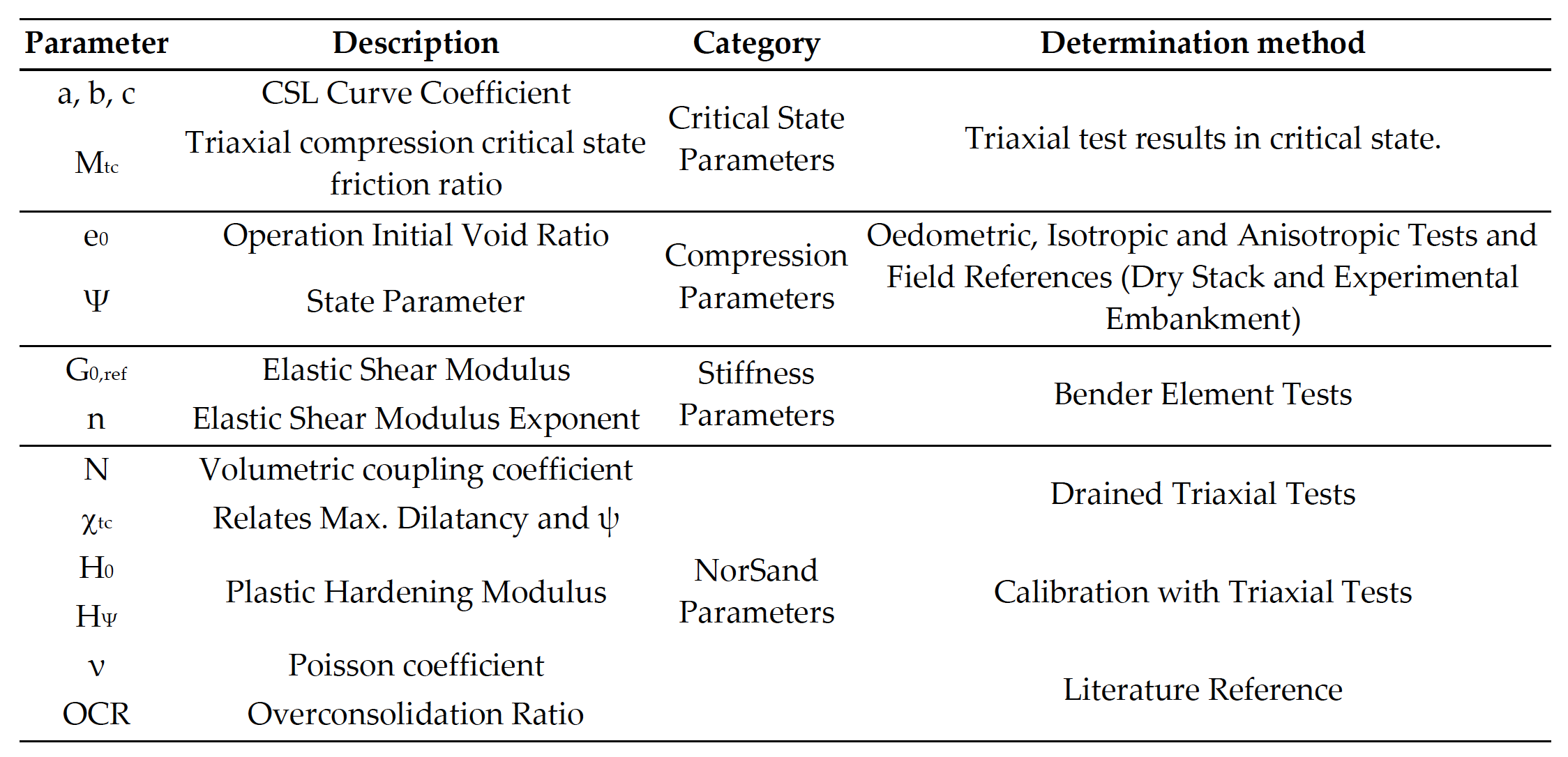 The parameters required for the calibration of the model and their process of determination are presented in Table 1 (Jefferies & Been, 2016; Viana da Fonseca et al., 2021).